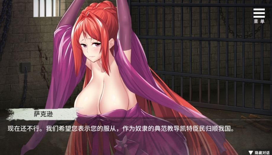 艾莉莎女王身故后数十年,强横的诺曼帝国侵略了凯特王国!并且囚禁了凯特女王莎恩‧凯特!究竟莎恩的命运会变成怎么样呢…游戏主打“调教”的玩法,各种内容可谓是相当滴丰富!全程日语CV配音,整体画风出众,CG事件23个以上,非常良心!并且游戏自带全回想解锁功能,在设置里选择打开即可!让你可以直接开冲!──生于服从,或者死于抵抗!这个选择也许很容易…然而当这个选择牵涉到五千反抗军与三十万被敌国所统治的故国人民命运时,这个决定会改变吗?